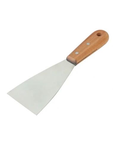 La herramienta perfecta para preparar y emplastecer superficies de todo tipo. Fabricada artesanalmente con una hoja flexible de acero inoxidable europeo de 1,2 a 0,6 mm de espesor, con cantos y boca refinados. Presenta un acabado en brillo espejo. Cuenta con un mango de madera tropical y doble remache para una mayor fijación.