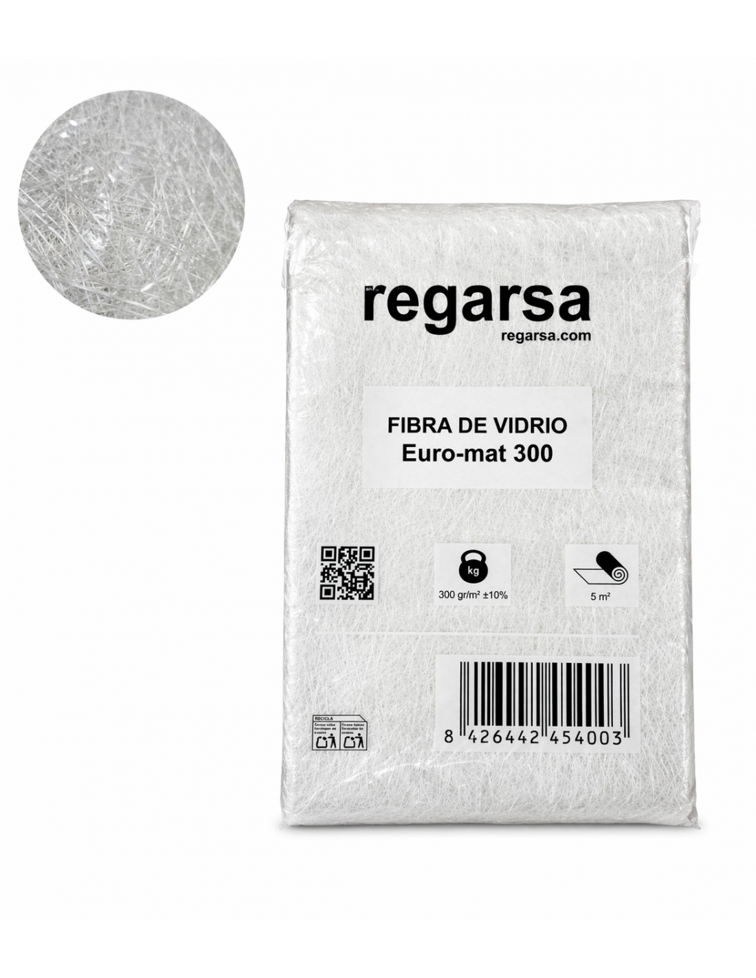 Hilos cortados de fibra de vidrio que se mantienen cohesionados gracias a un emulsionante.