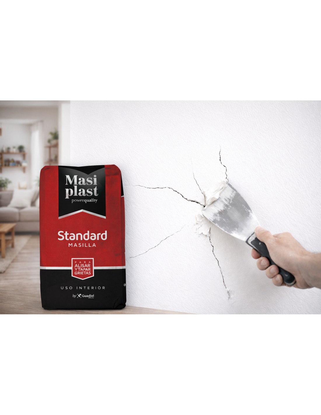 Masilla destinada para tapar y rellenar grietas, agujeros, etc... Siempre que el soporte sea absorbente. Fácil lijado.